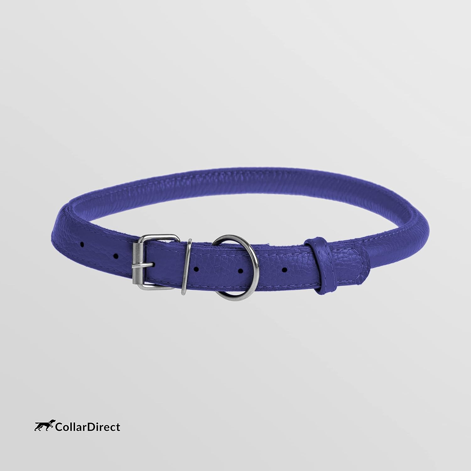 CollarDirect Rolled Leather Dog Collar, Soft Padded Round Puppy Collar, Handmade Genuine Leather Collar Dog Small Large Cat Collars 13 Colors (11-14 Inch, Purple Textured)