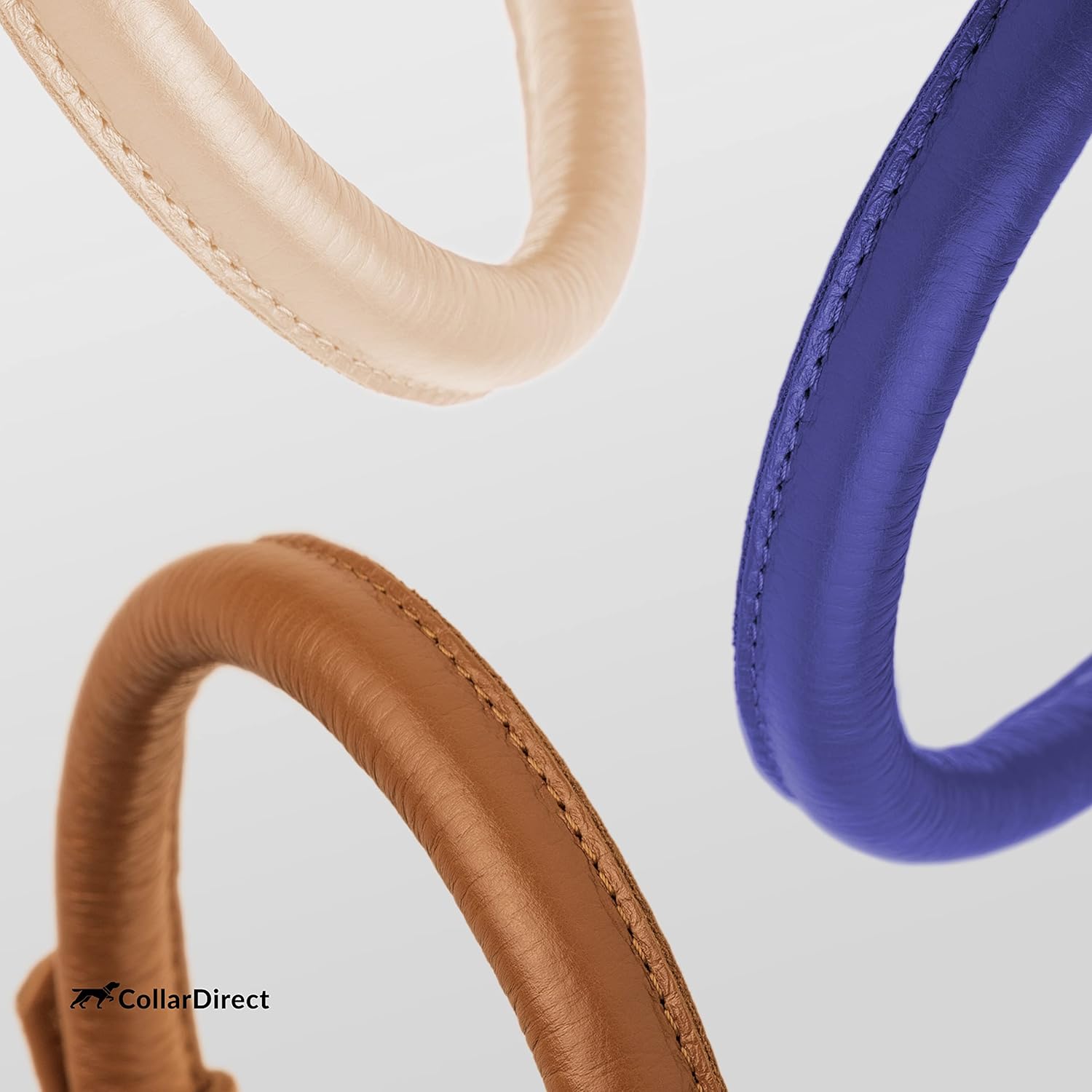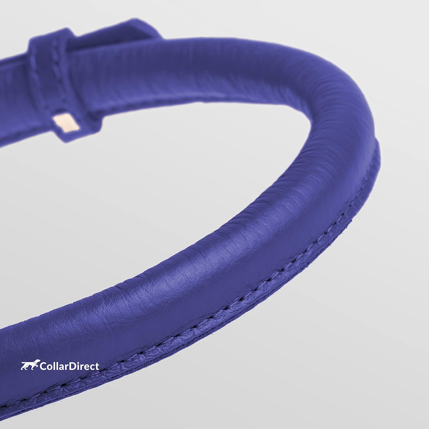 CollarDirect Rolled Leather Dog Collar, Soft Padded Round Puppy Collar, Handmade Genuine Leather Collar Dog Small Large Cat Collars 13 Colors (13-16 Inch, Purple Textured)