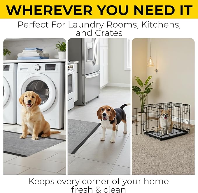 - MULTIPLE USES FOR DOG WEE WEE PADS - Use these xl pee pads as food and water spill catchers, cat litter mats, wet paw door mats, crate liners, furniture protectors, bath mats, or oil change drip mats, making these doggie pads x large versatile.