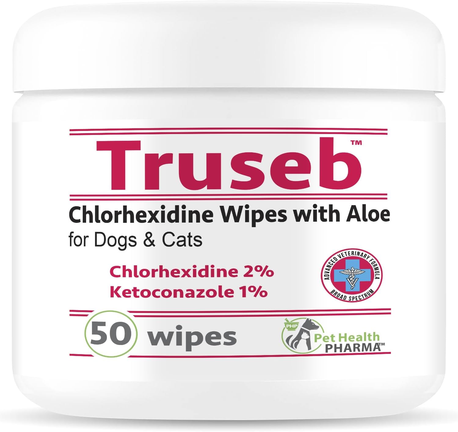 Chlorhexidianes Wipes for Dogs, Cats and Horses (Made in U.S.A) (USA) (Ketoconazole & Chlorhexidine Wipes, 50 Count)