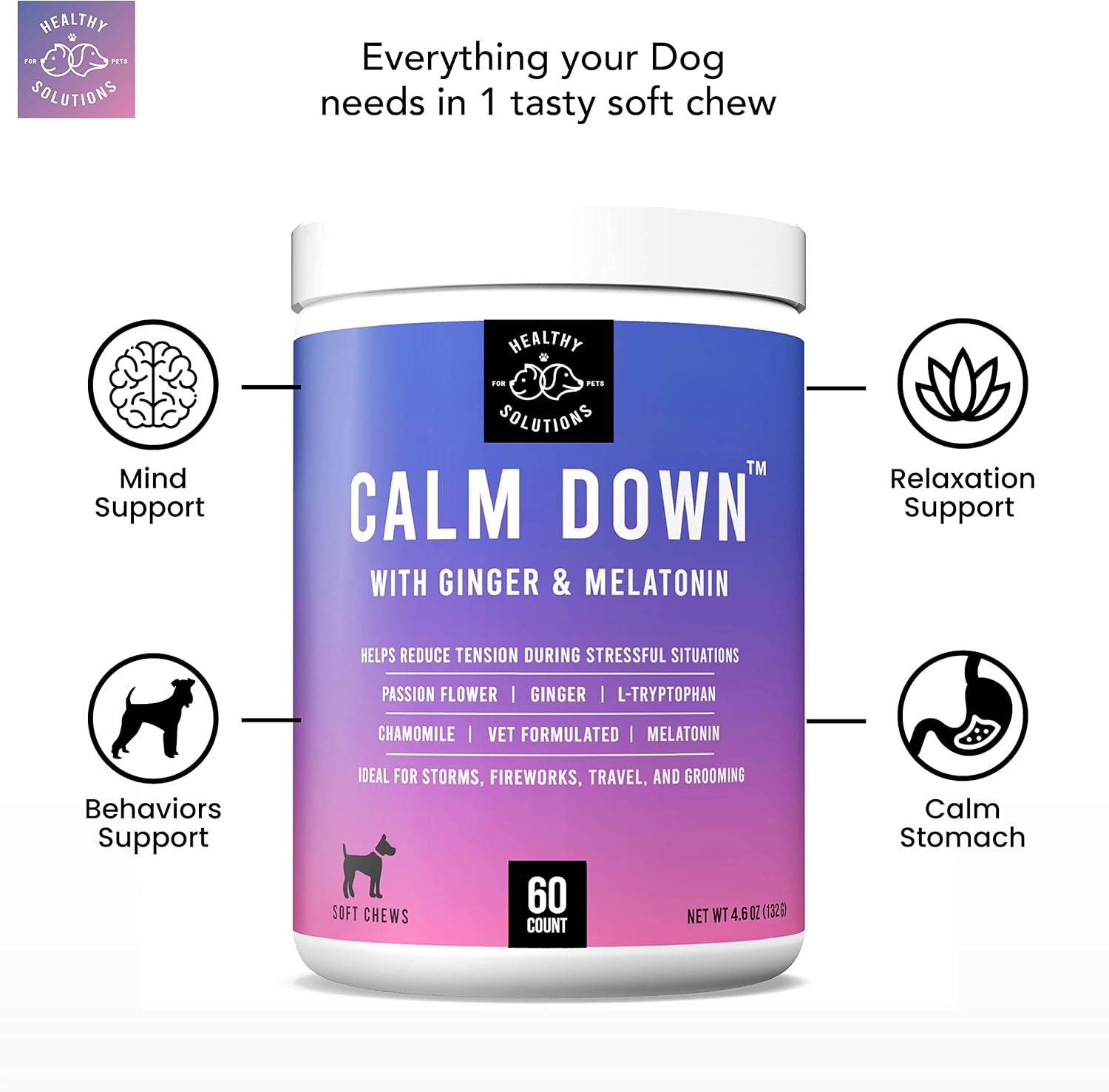 - šø ALL AGES & DOG BREEDS -- Calm Down Soft Chews work great for all breeds at any life stage including puppies over the age of 12 weeks. These tasty dog calming chews - anxiety relief treats can be used daily or as needed.