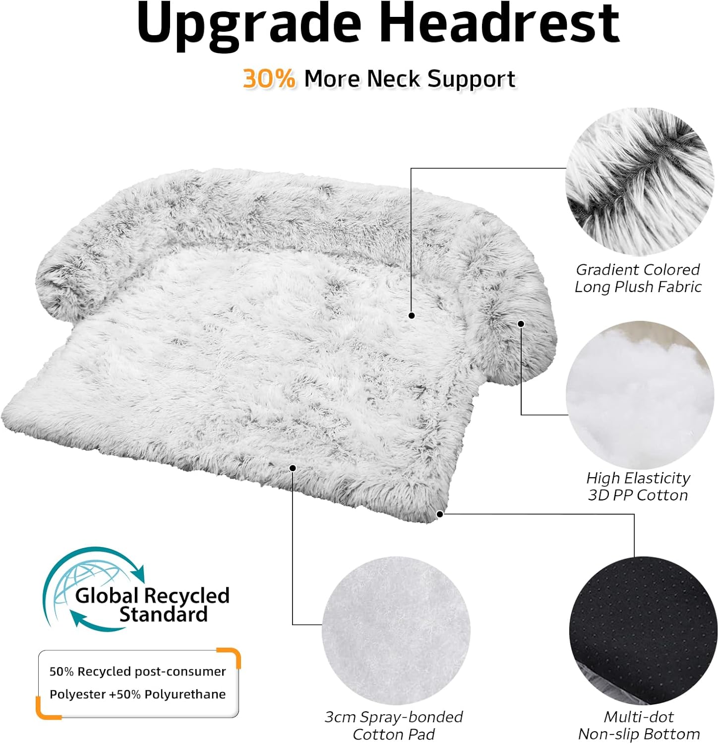 Calming Dog Bed Fluffy Plush Dog Mat for Furniture Protector with Removable Washable Cover for Large Medium Small Dogs and Cats (Medium, Light Grey)