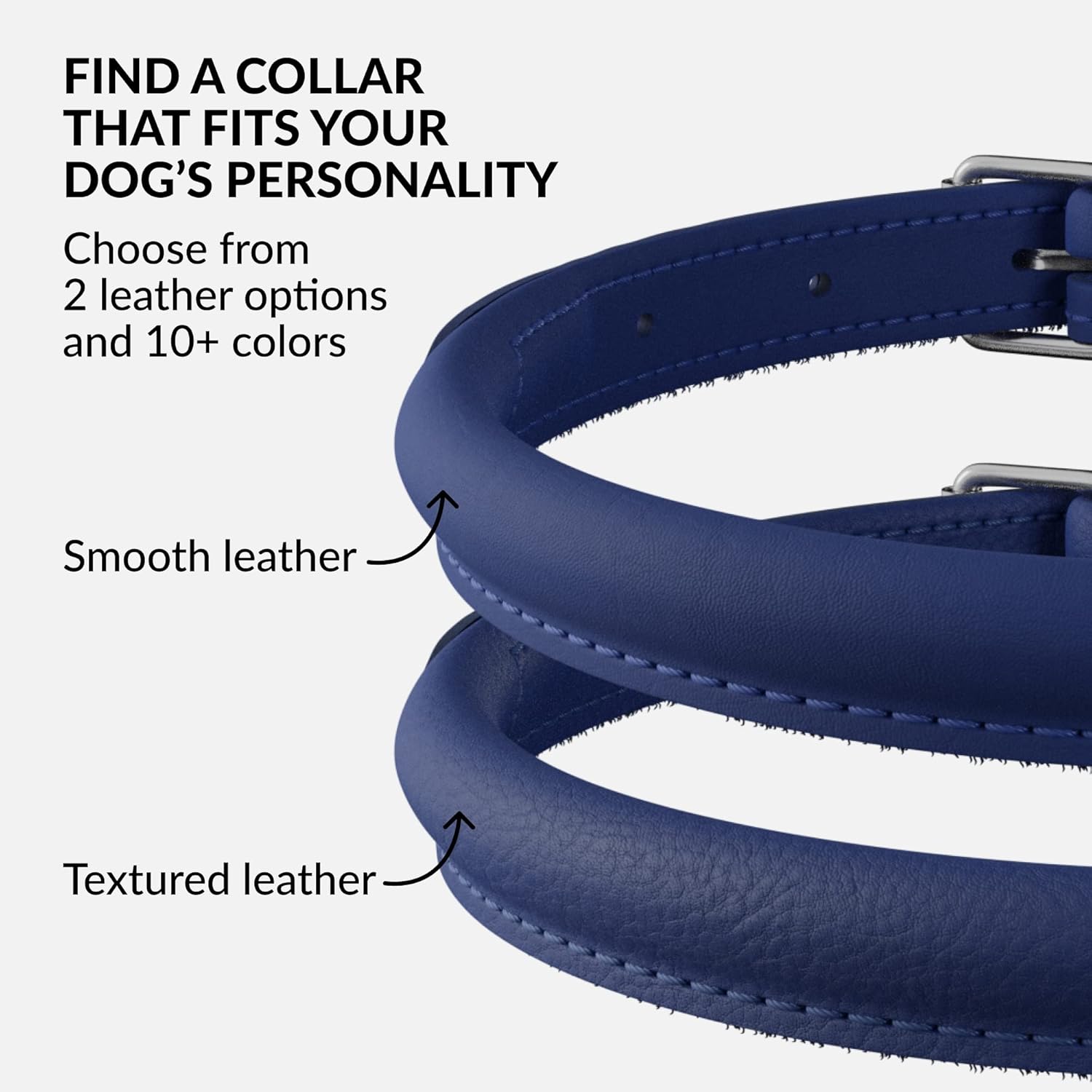 CollarDirect Rolled Leather Dog Collar, Soft Padded Round Puppy Collar, Handmade Genuine Leather Collar Dog Small Large Cat Collars 13 Colors (13-16 Inch, Deep Blue Smooth)