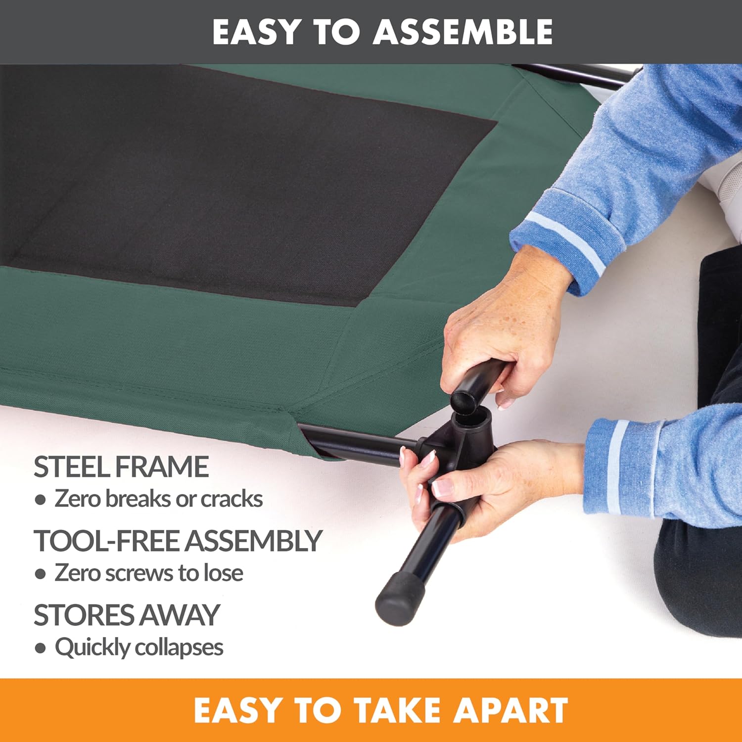 K&H Pet Products Outdoor Elevated Dog Cot, Breathable Cooling Elevated Cot Hammock Pet Bed for XL Dogs, Washable Mesh Cover, Raised Metal Frame, Collapsible, Portable - Extra-Large 50 X 32in Green