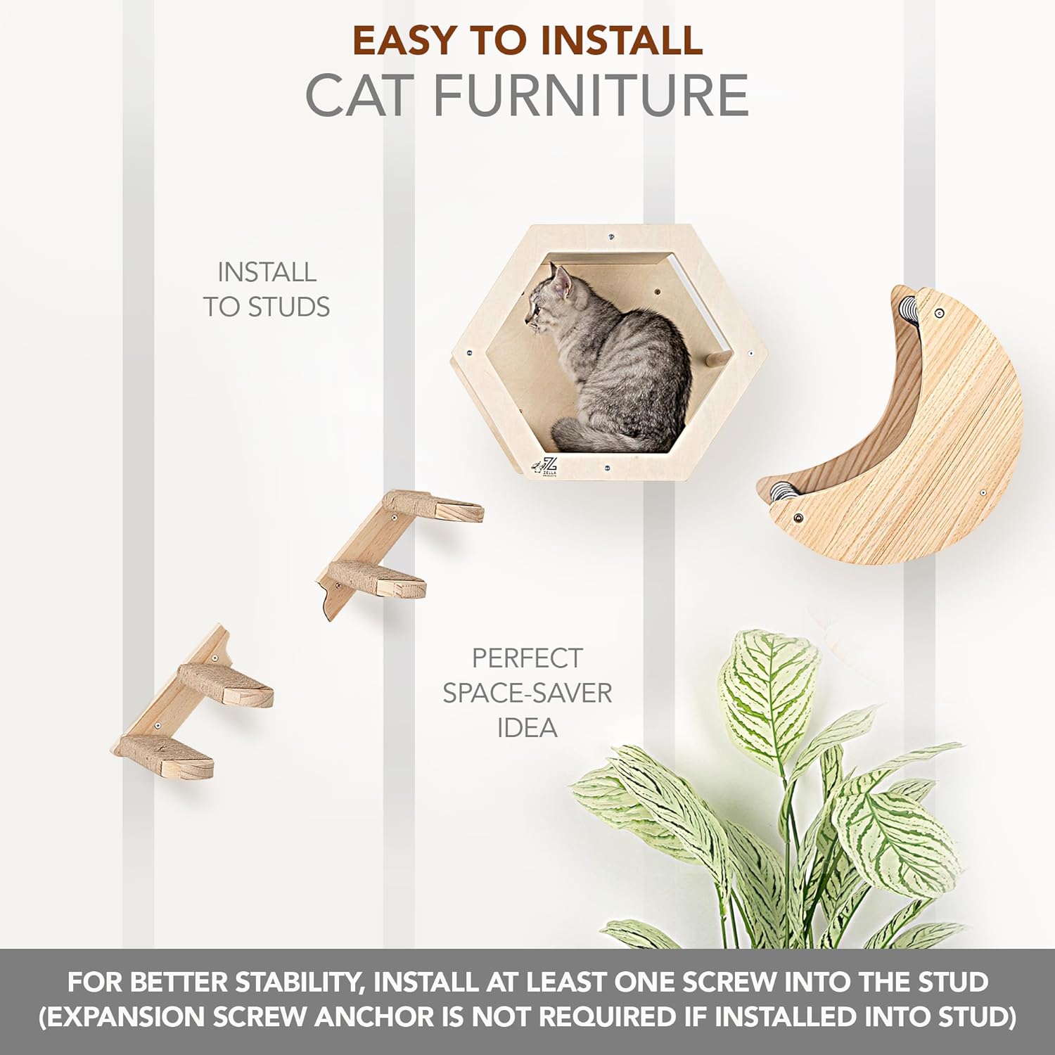 - 🐾CAT FURNITURE: Elevate your pet's comfort with our Cat Wall Hammock, Hexagon House, and Cat Wall Steps; easily hang them on your wall to provide the ideal sleeping and lounging spots, keeping your floors and furniture clean.