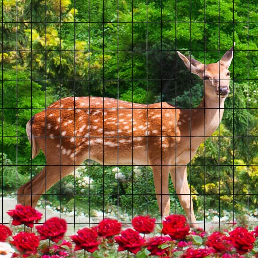 Black PVC Coated Welded Wire Fence 48 Inch x 50 Foot, 2 Inch x 4 Inch 14GA, Garden Border Fencing Roll Vinyl Coating Metal Wire Mesh Hardware Cloth for Yard Vegetable Plant Protection
