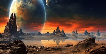 24X16IN Cosmic Aquarium Background, Cool Parallel Space Themed Fish Tank Background, Tropical Desert Terrarium Background with 8 EVA Double-Sided Tape