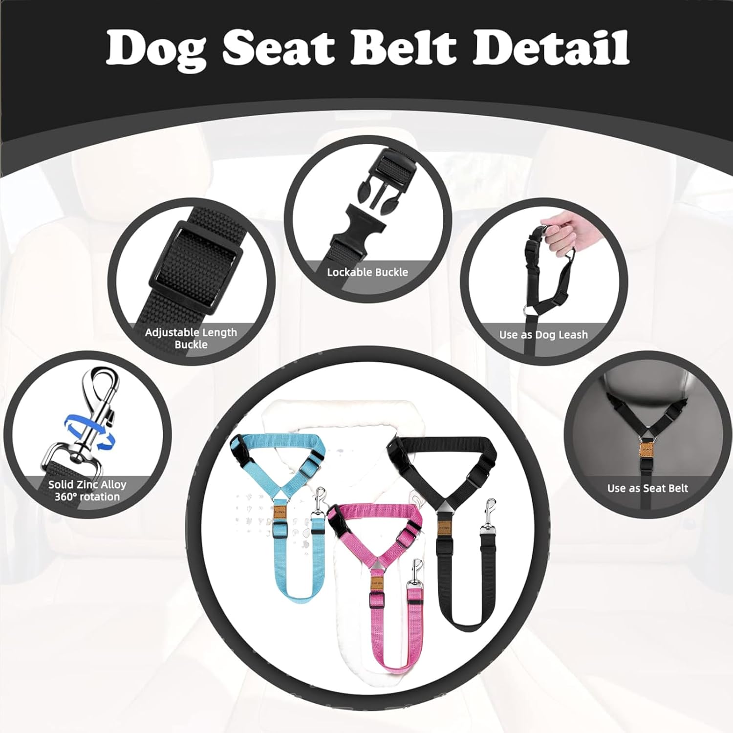 - 【Premium Durability & Safety】This 3 Packs Dog Cat Safety Seat Belt Strap is crafted from high-quality nylon fabric to ensure long-lasting use. The solid zinc alloy swivel snap offers a secure attachment to your pet’s harness, ensuring safety while traveling. The durable buckles and sturdy construction provide a reliable way to keep your pet safely restrained during vehicle rides. Whether you are taking a short drive or a long road trip, this adjustable nylon fabric dog restraint ensures the ultimate protection for your pet in the car.