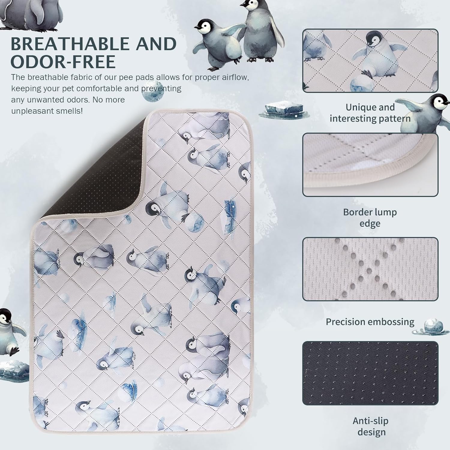 - 【Fashion and Non-slip】 The cute design makes this reusable pee pads for dogs very cute and makes your room more stylish. And the soft and comfortable puppy pee pads with anti-skid bottom can achieve a certain fixed effect.The bottom is waterproof and you can place it anywhere you want.
