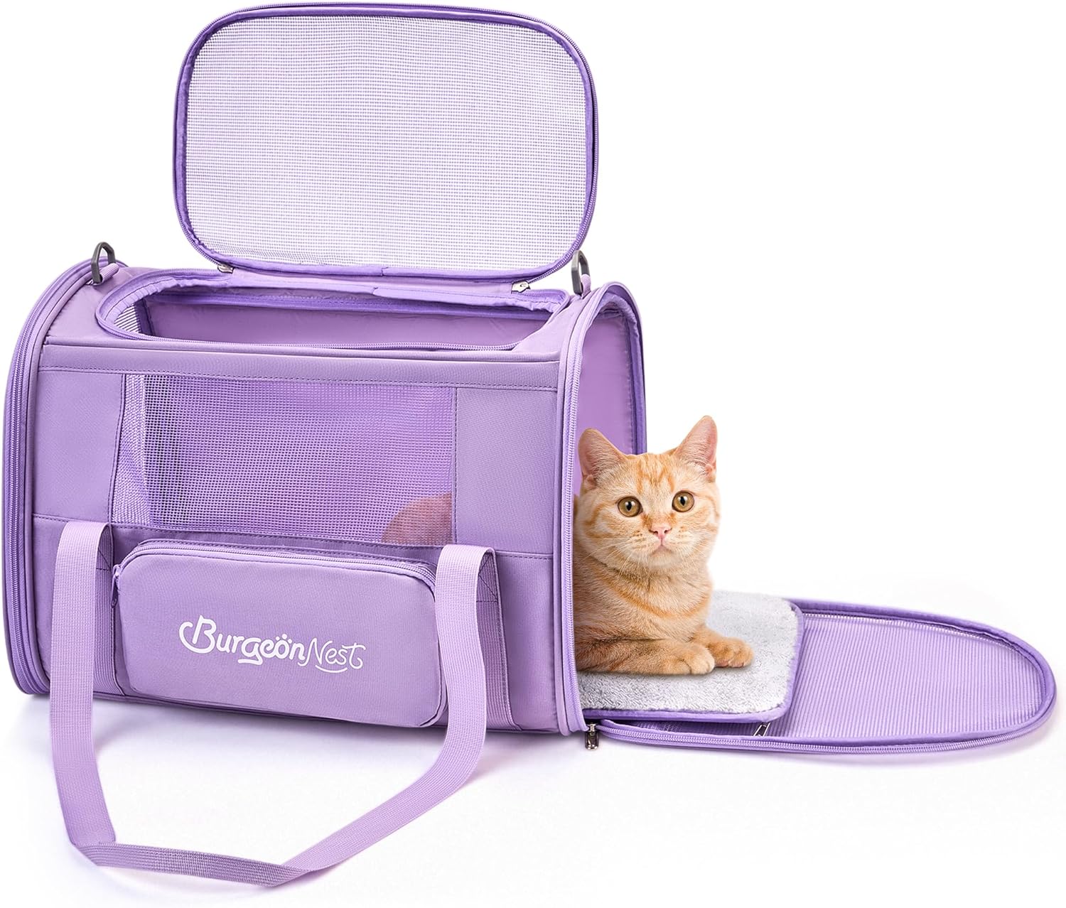 - Well-made Large Cat Carrier: With upgraded memory metal for sturdy frame, this cat carrier for 2 cats does not collapse. Made of breathable fabric, BurgeonNest cat carrier has 3 doors to open, it is more convenient to put your dog cat in or out. Plush cushion with sturdy bottom inserts ensures comfortable environment for pets.