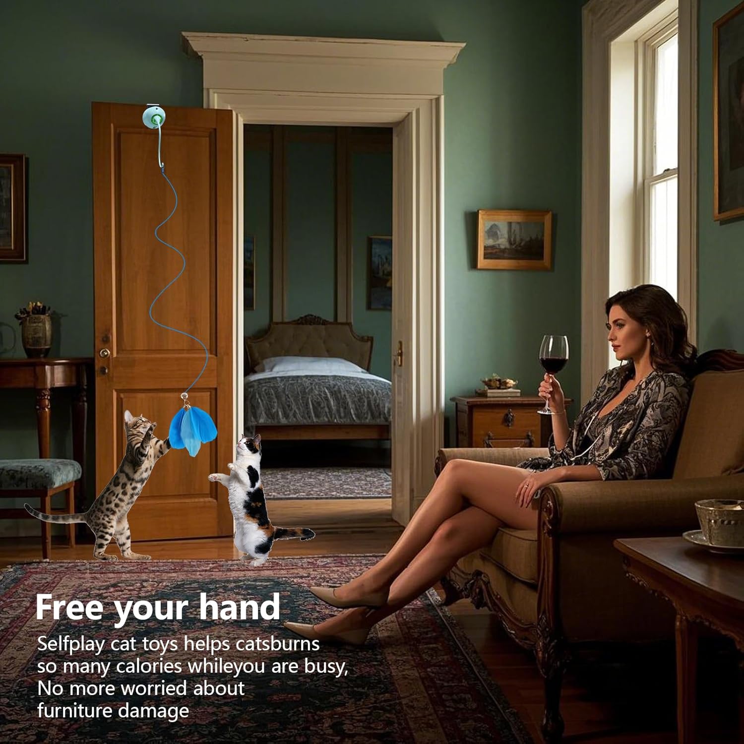 Cat Toys Interactive for Indoor, Cats Toy Hanging Door Electric for Bored,Feathers Toy Kitten Rechargeable Door Hanging Automatic String with 4pcs Feathers Toys(Blue)