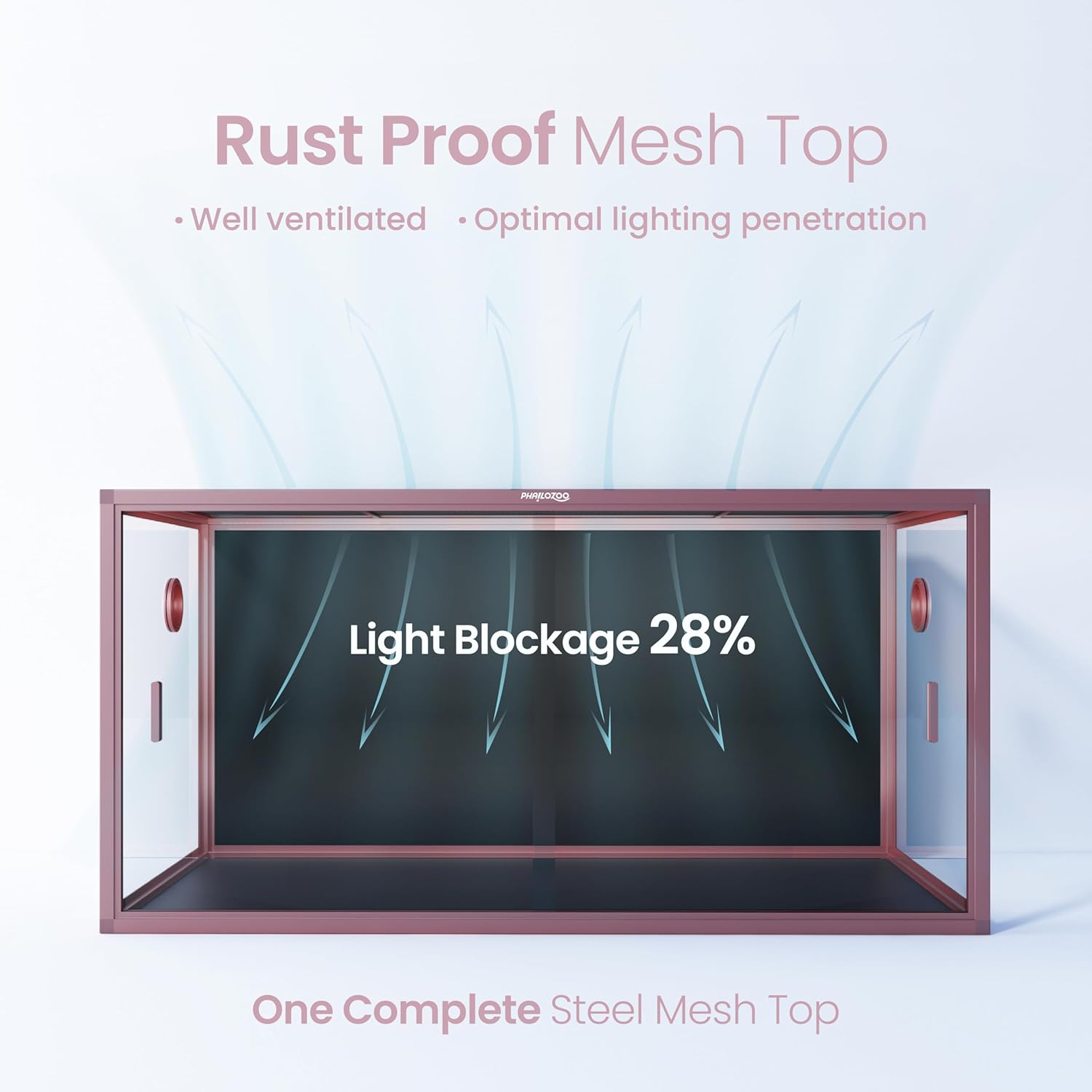 • 【Highly Adaptive】Well-lit screen top with only 28% blockage. Compatible with many reptile accessories and equipment, such as heat lamps for reptiles, reptile humidifiers, reptile misters, reptile foggers, reptile UVA and UVB. Our reptile terrarium is great for holding temps and humidity.