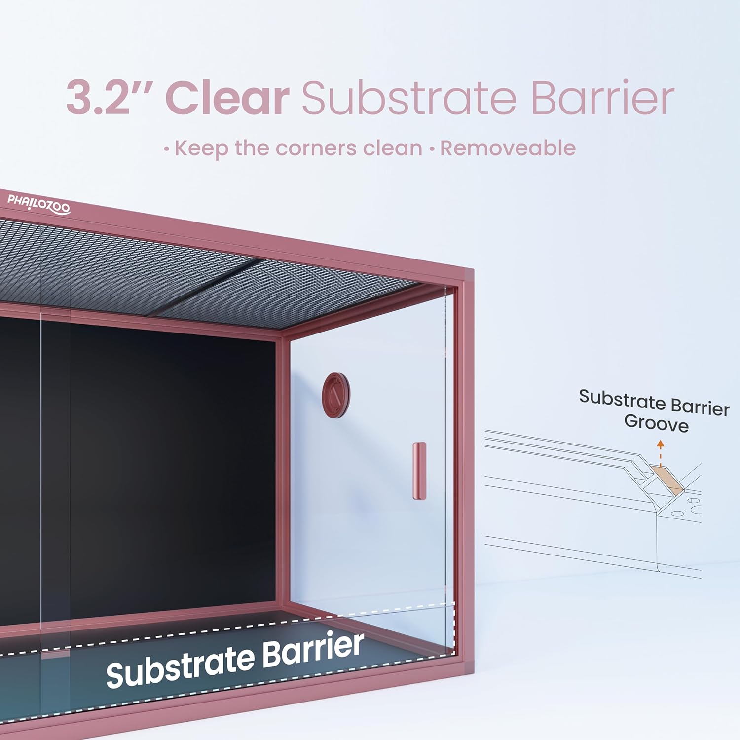 • 【Easy Maintenance】Front opening reptile terrarium with door handles included for easy cleaning & feeding. No more suction cup problems or unsightly fingerprints all over. The substrate barrier keeps the substrate in place. Our tempered glass doors are durable enough to withstand scratching.