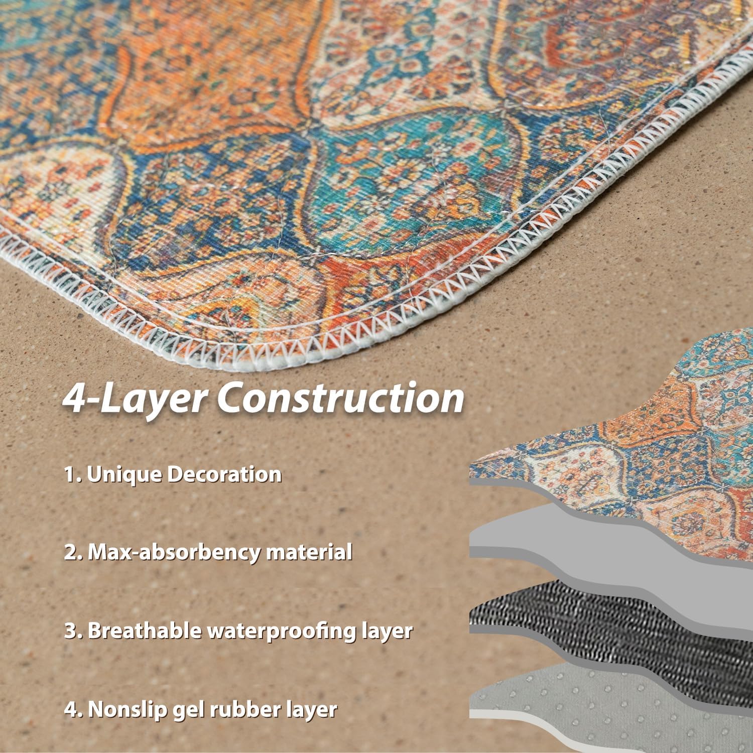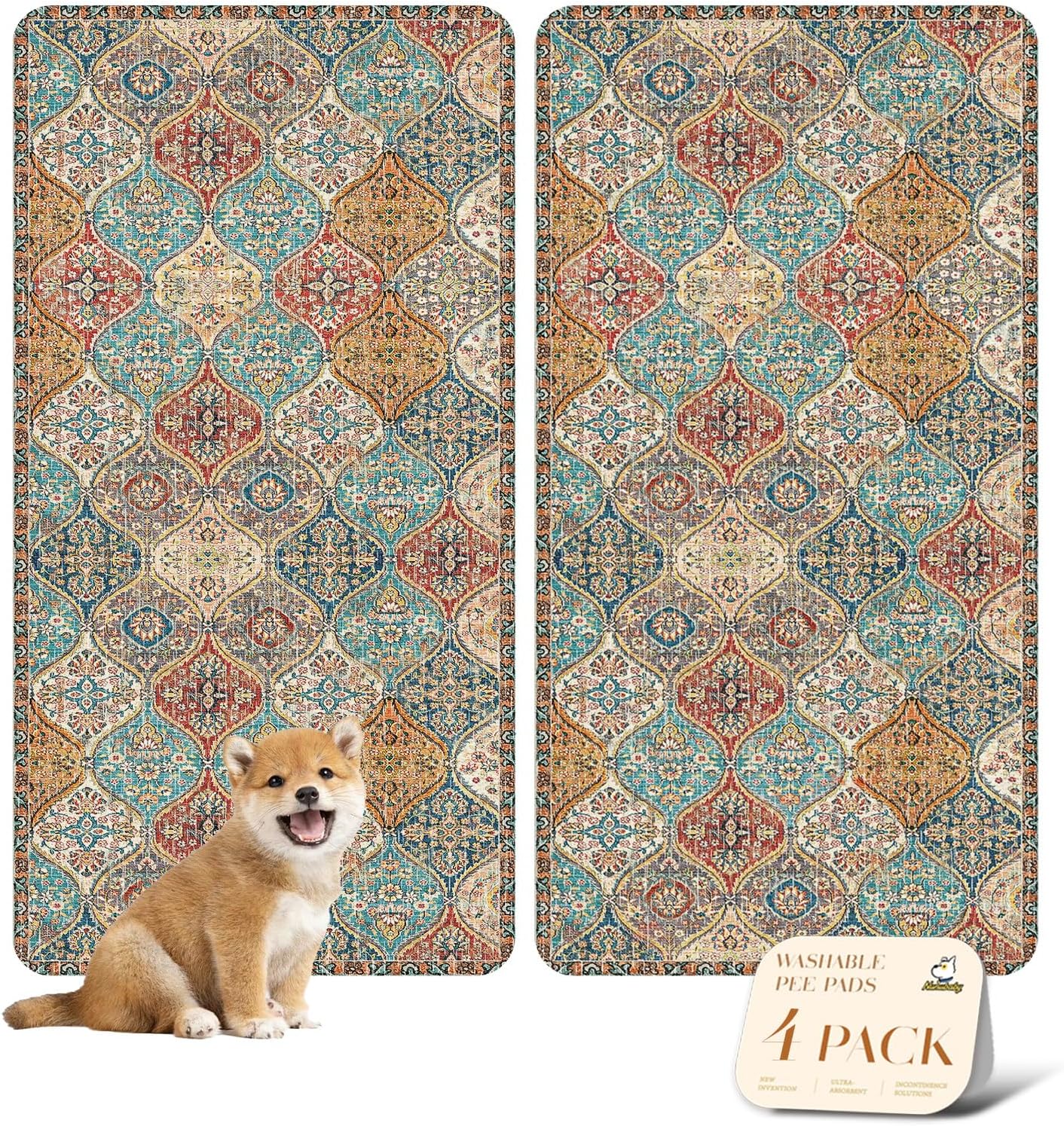 nunubaby 4PACK Washable Pee Pads for Dogs, Stylish, Non-Slip and Leak-Proof Pee Pads. Reusable Potty Pads for Dogs for Crates and Floors.(Cream/Multi, 24" x48")