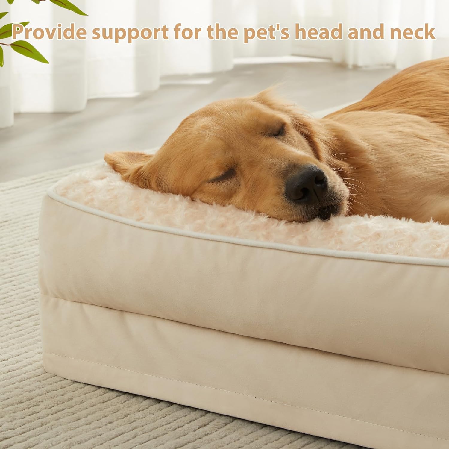 - L-SHAPED DOG BED: This X large dog bed adopts L shaped design, the dog beds Soft and comfortable rails provide extra support for our pet's head and neck, and the dog sofa bed has no railings on two sides, providing plenty of room for pets to stretch out. The dog beds for large dogs allow pets to be more soothed and relaxed and to fall into a deep sleep.