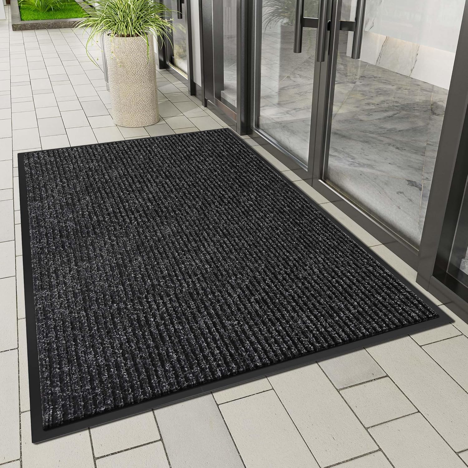 Indoor Outdoor Door Mat, 5' x 3' Doormat for Entryway, Rubber Backing Non Slip Front Door Mat Outside Entrance, Super Absorbent Commercial Floor Mat for Home Office, Black