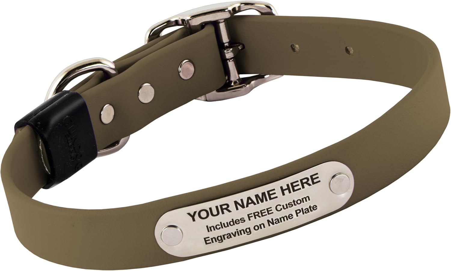 Biothane Custom Dog Collar – Waterproof, Stink-Proof Personalized Collar with Name & Phone Number – Durable, Many Sizes and Colors – Assembled in USA (Olive Green)