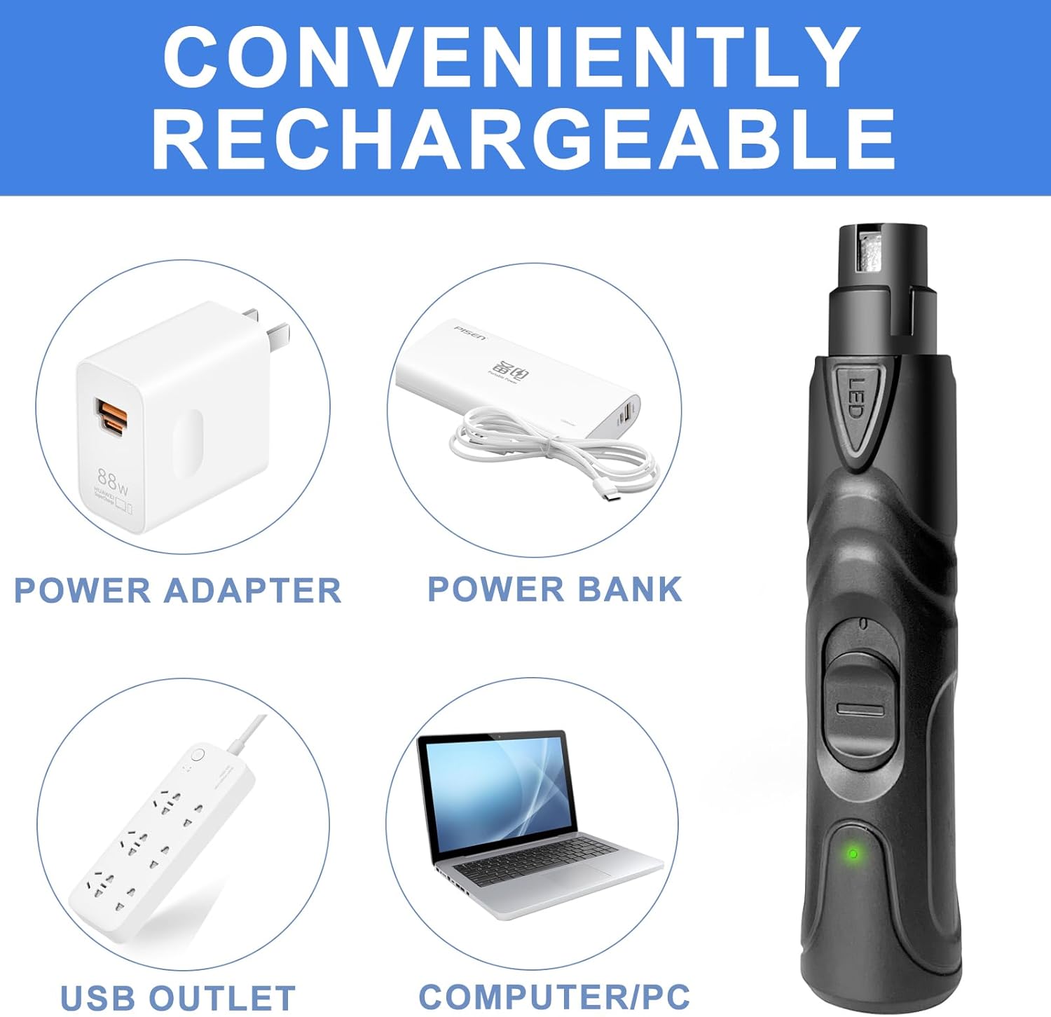 - [Safety LED Illumination] Precision LED lights detect the quick in real-time combined with diamond-coated grinding heads for safe, painless trimming by preventing over-clipping near blood vessels.
