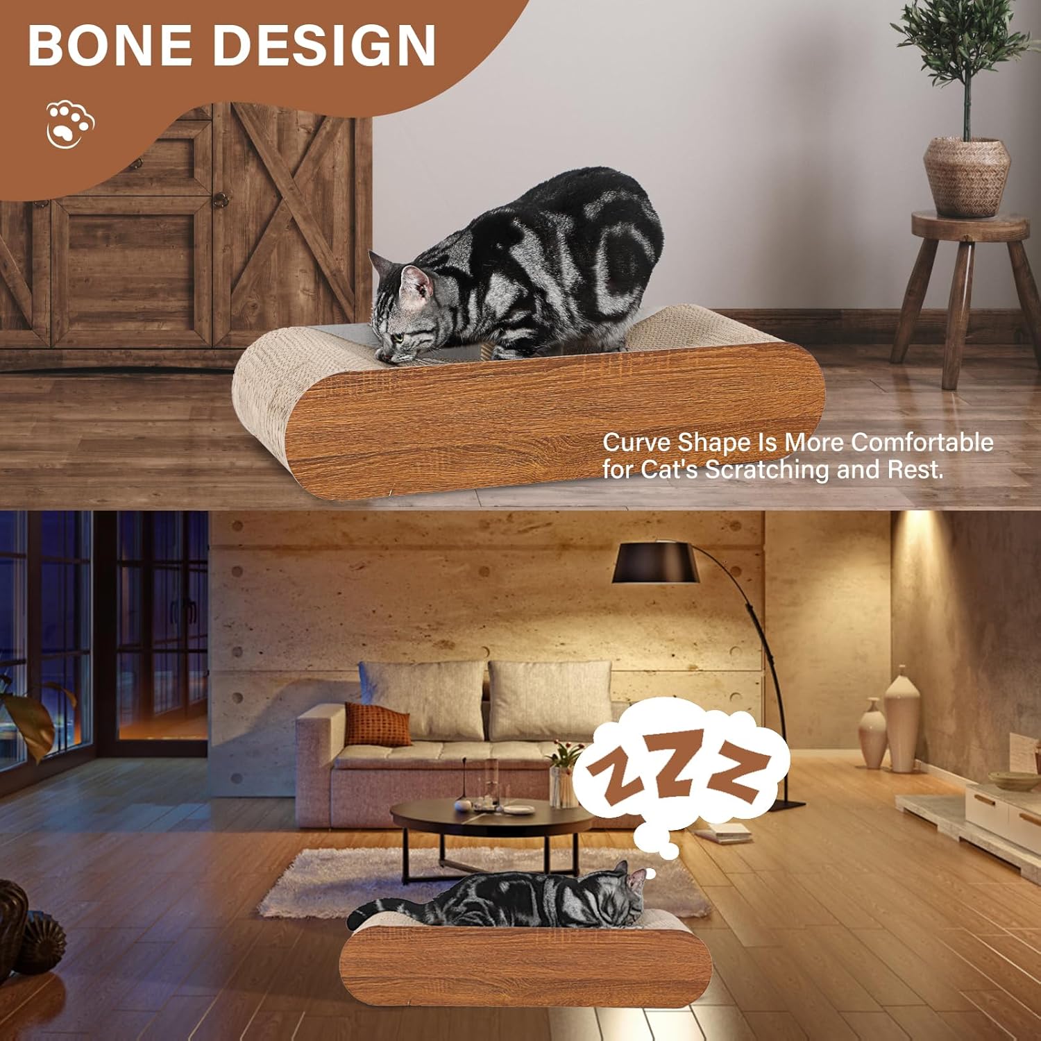- CONCAVE DESIGN: The scratch board has a bone-shaped design, which makes it easy to scratch and rest. The comfortable contoured surface is ideal for cats to flex and stretch.