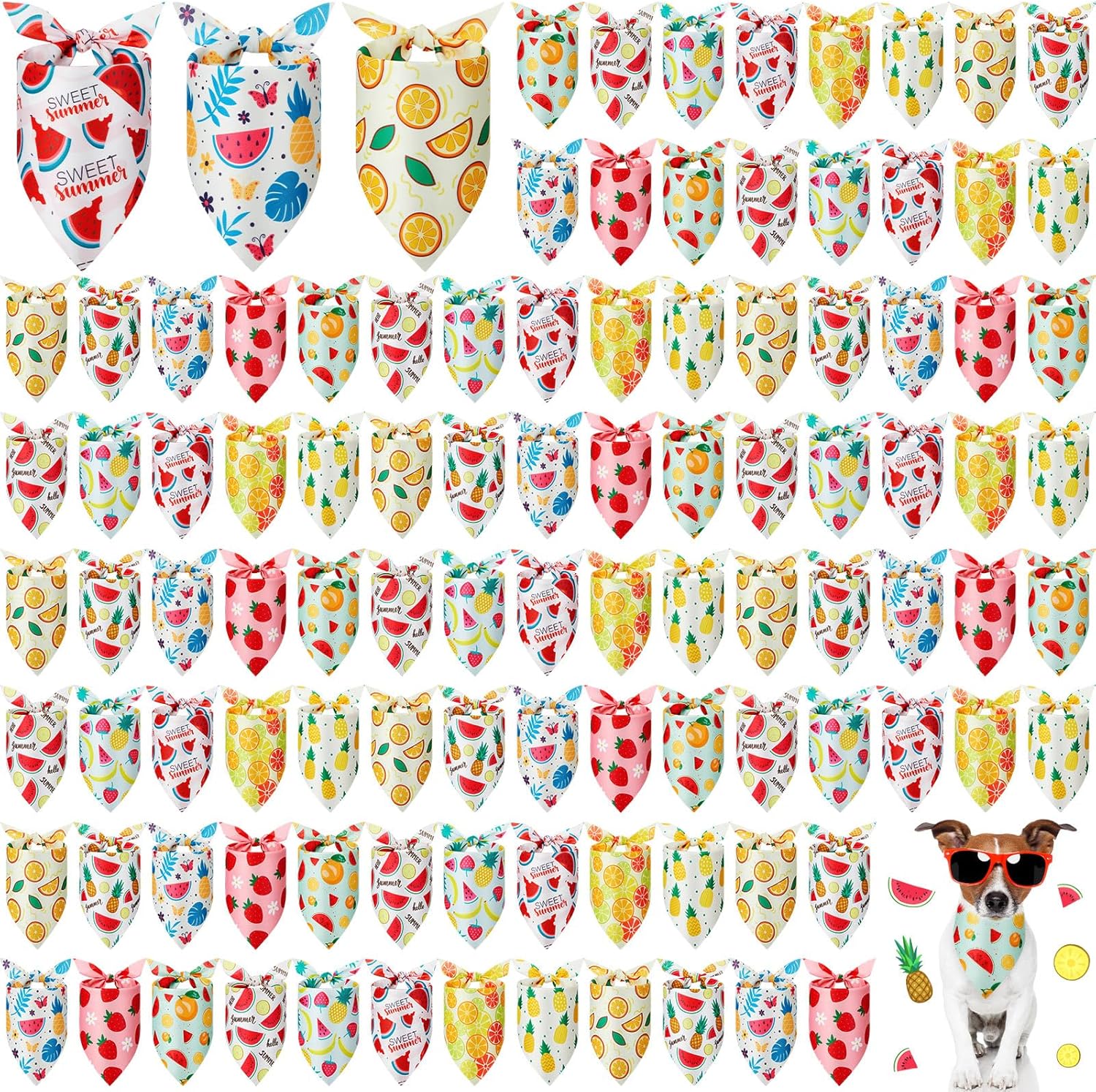 100 Pcs Fruit Dog Bandanas Bulk Summer Bandanas for Dogs Hawaiian Soft Bibs Adjustable Triangle Scarf for Small Medium Large Pet Costume