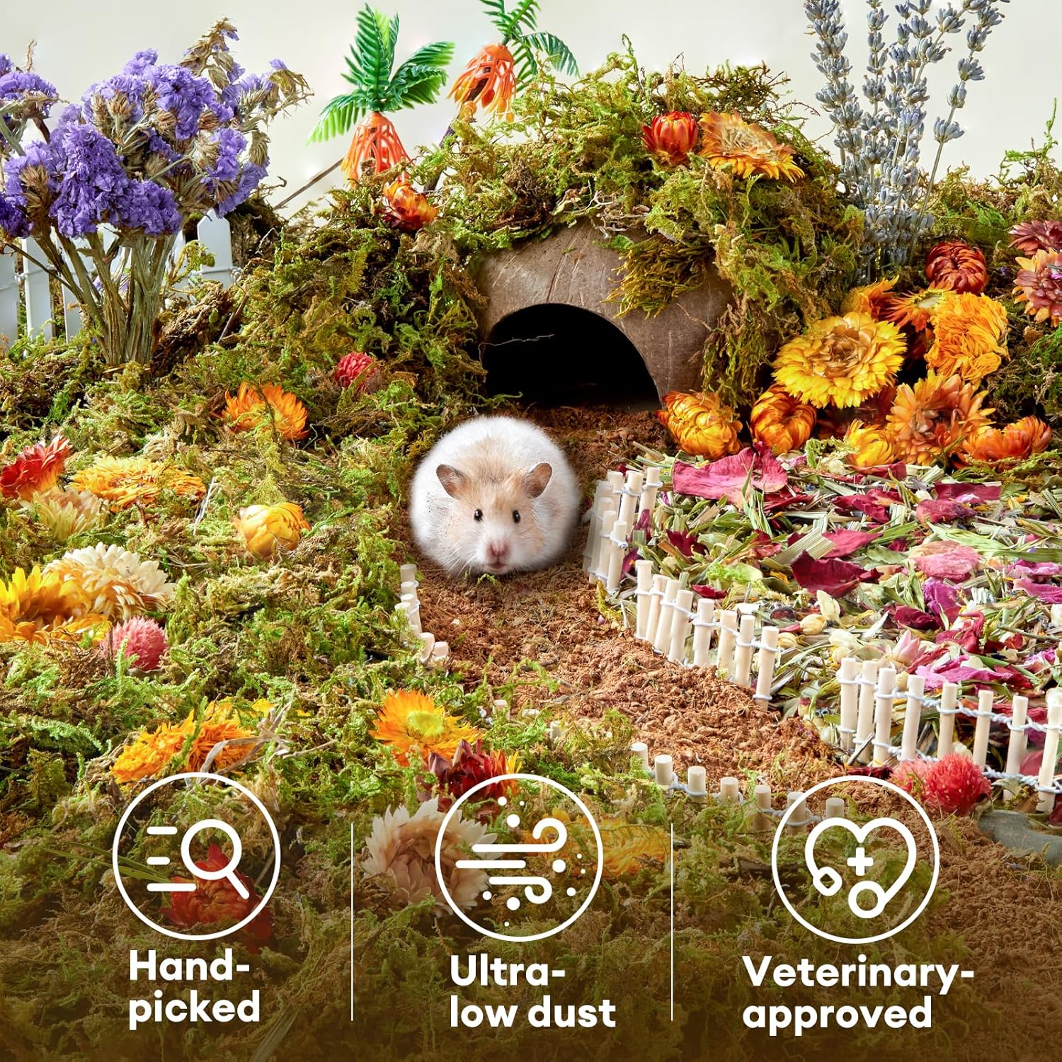 - Soft Material, Ideal for Landscaping :The soft, fine texture of the flower bedding provides a comfortable hamster enrichment and is an excellent decorative material for creating a beautiful and diverse hamster habitat.