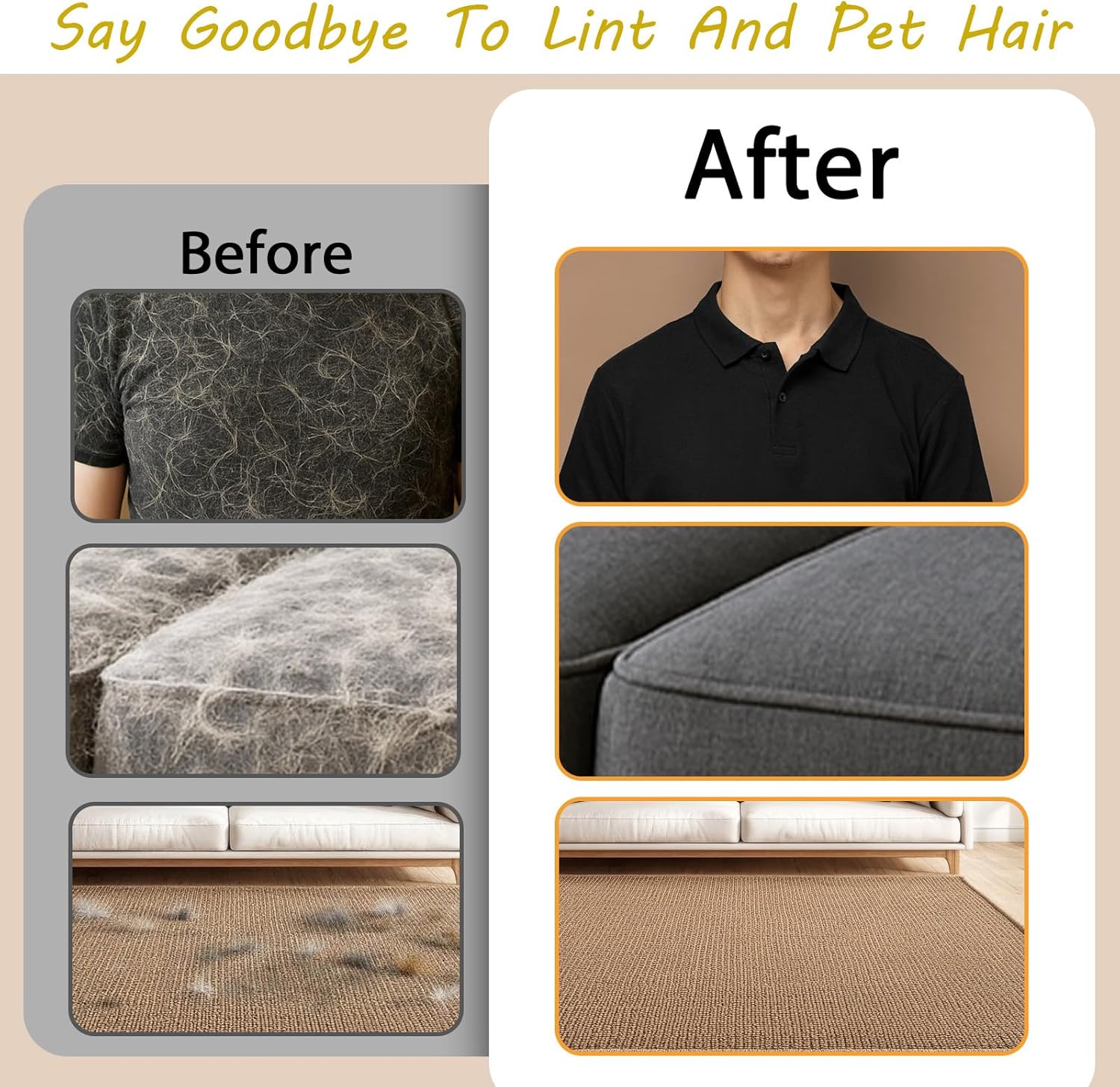 - 【Powerful Electrostatic Pet Hair Removal Tool】: Advanced static technology lifts pet hair, lint, and dust with simple swipes. Works on all fabric surfaces like sofas, carpets, clothes, and car seats—no more struggling with stubborn fur.