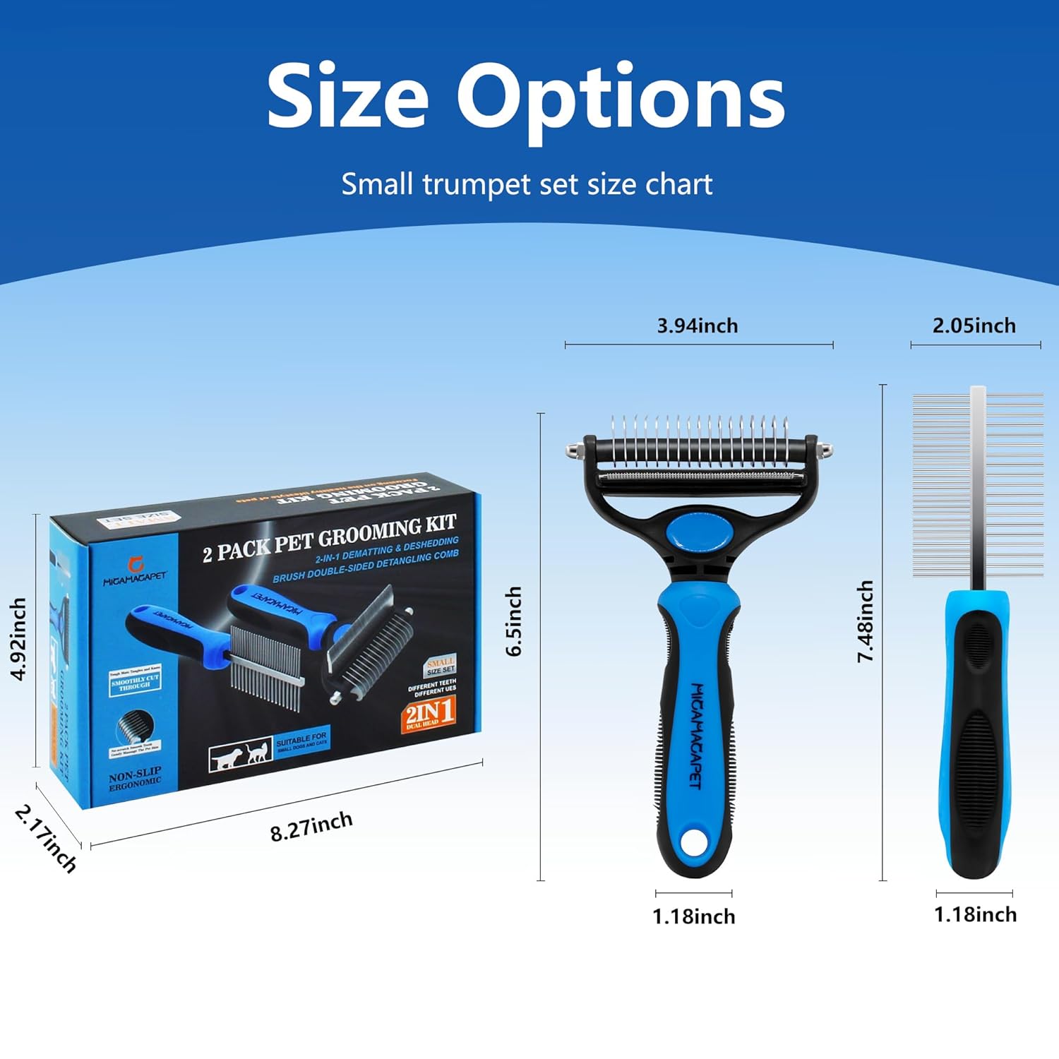 2-in-1 Shedding Brush and Detangling Comb Combo,Small Dog Stripping Brush, Dog and Cat Grooming Comb, 17 Stainless Steel Teeth Remove Tangled Hair, Pet Grooming Tools-Small