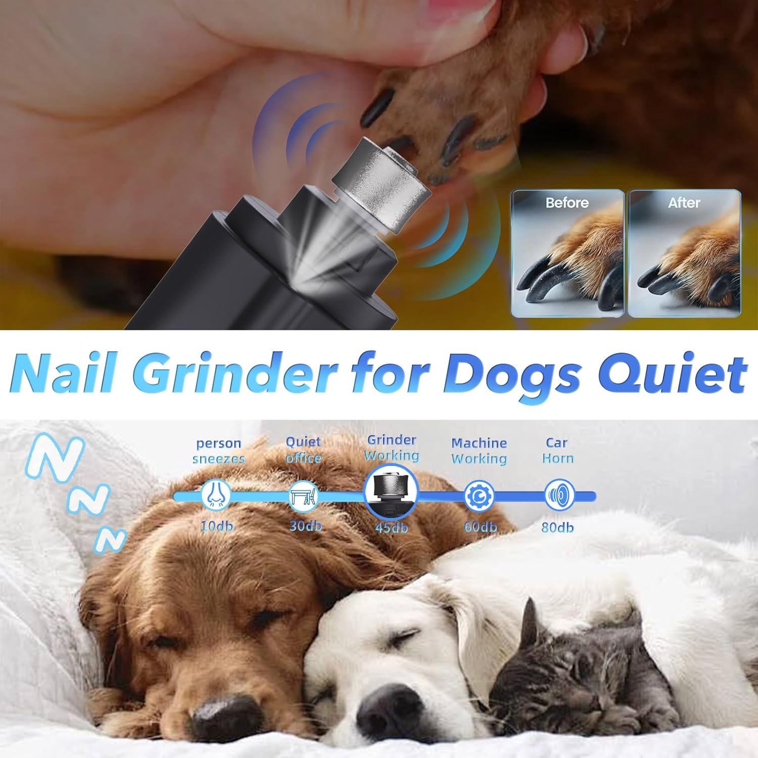 - ăLow Noise & Safeă: CATPICK pet cat nail grinder for dogs operates quietly, reducing the risk of pets getting scared or anxious during the nail care.