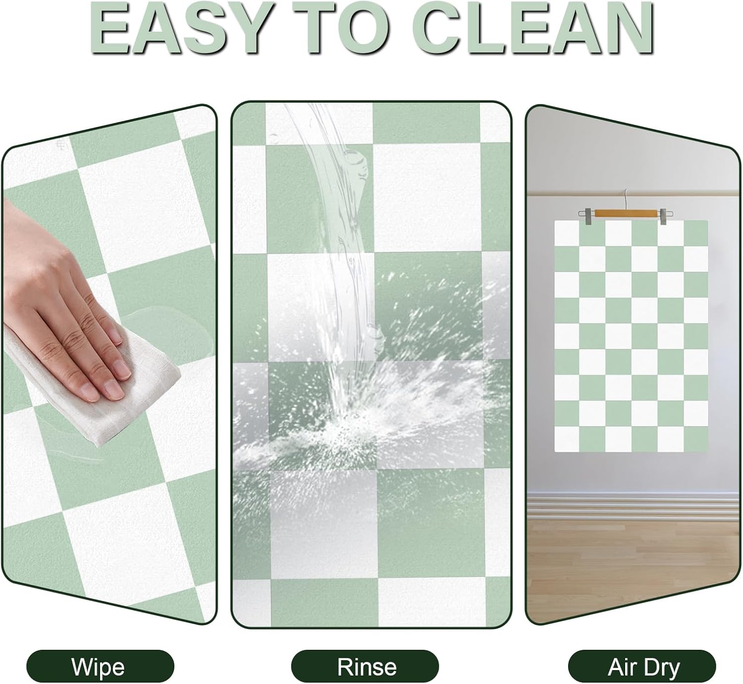 Checkered Dog Cat Feeding Mat, 17'' x 28'' Large Dog Food Mats, Absorbent Pet Feeding Mat for Food and Water Bowl, Dispenser, Checkerboard Pet Placemat with Rubber Backing, Green & White